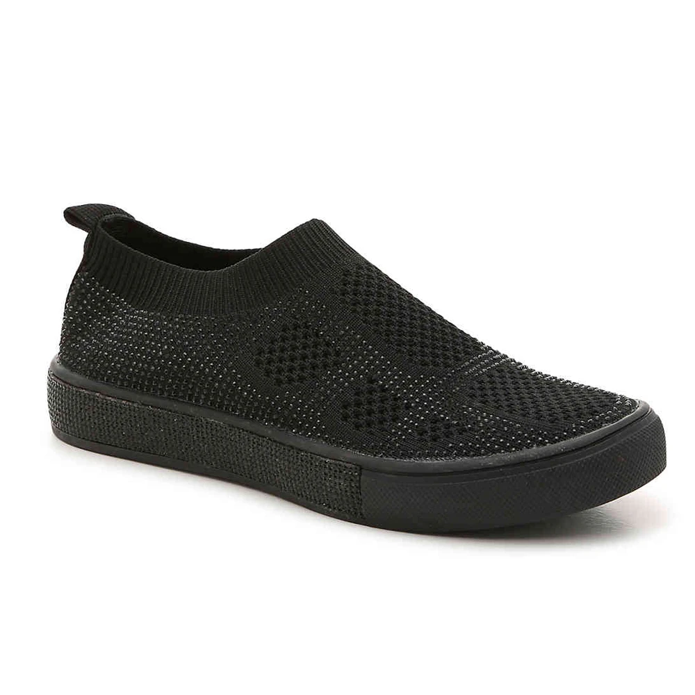 This new Bernie Mev slip-on is very `Glamorous.` The shoe features rhinestone embellishments and a knitted fabric upper, while the foot bed is plush and cushioned.