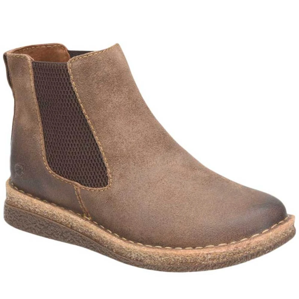 A classic Chelsea boot for your fall wardrobe. This versatile boot features a distressed leather upper and two stretch gore panels. Easy on/off style and a suede and textile lining. Flexible rubber outsole and heel height of 1`.
