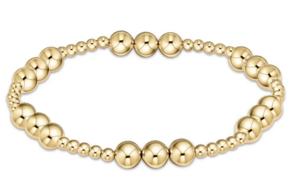 Hand beaded on high performance elastic for a slight stretch to easily roll on and off your wrist.