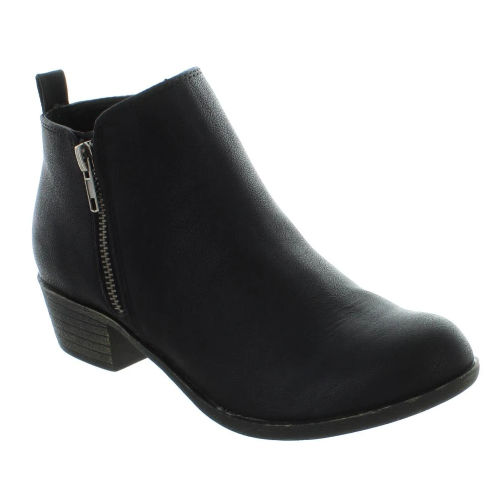The Dolly is a stylish ankle bootie that you`ll wear every day. The inside zip makes for easy access, the outside zip is just for fun. The mid height heel and cushioned footbed will make you want to wear them all day and night.