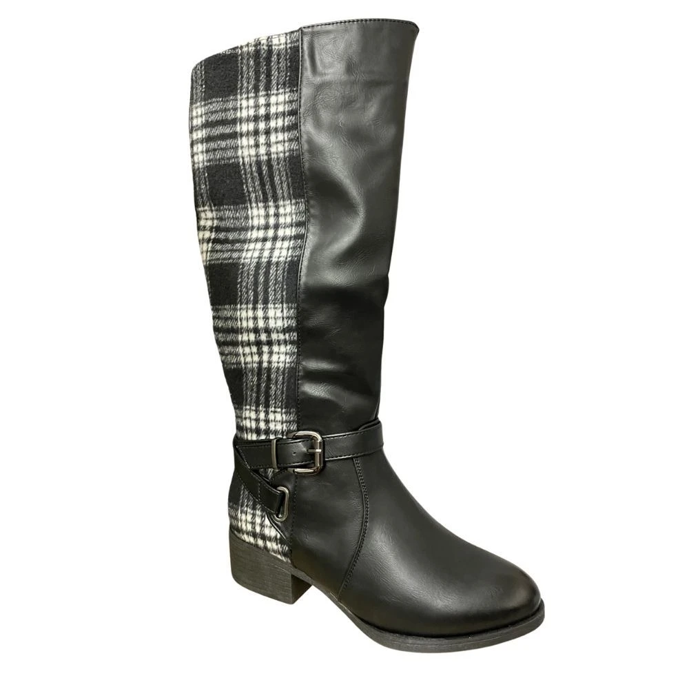 These adorable high boots feature a red and black plaid design on the back part of the boot. The front and upper feature a faux suede material and a worn toe. An adjustable buckle around the ankle allows boot to be adjusted to the best fit for you. Pair with jeans or leggings and a sweater for the fall.