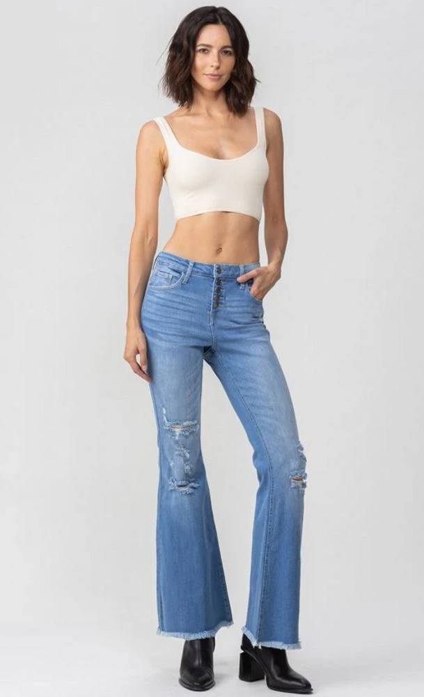 High Rise Exposed Button Flare