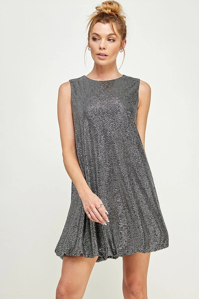 There is no more of a perfect dress for the holidays than this sparkle Mallony dress. Features a shiny, sparkle design and a sleeveless style. Round neckline and cute back peephole. Pair with any type of flats or wear it with heels for a dressy occasion.