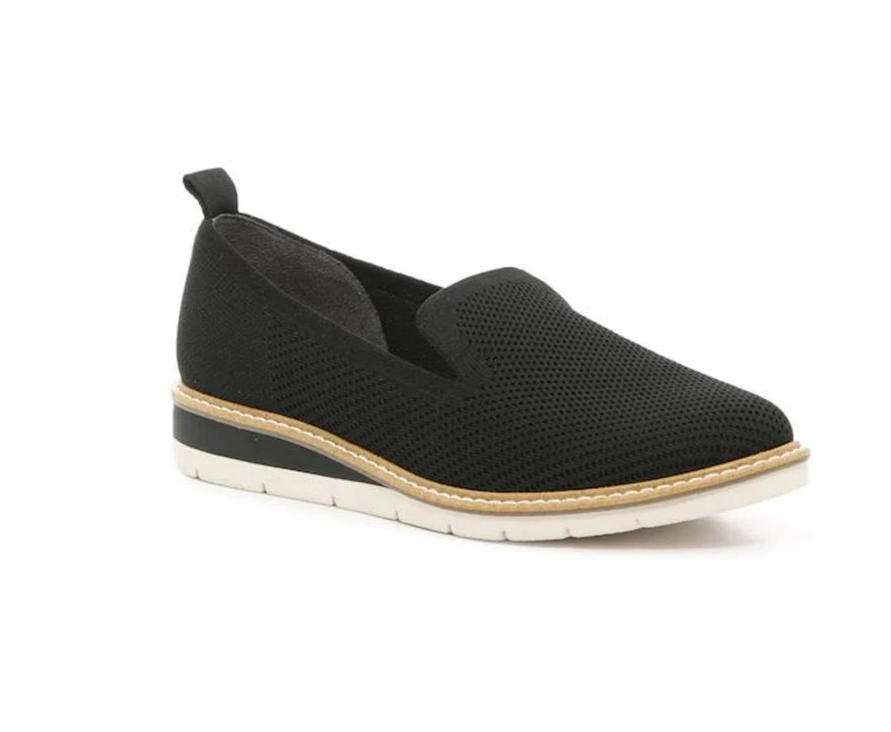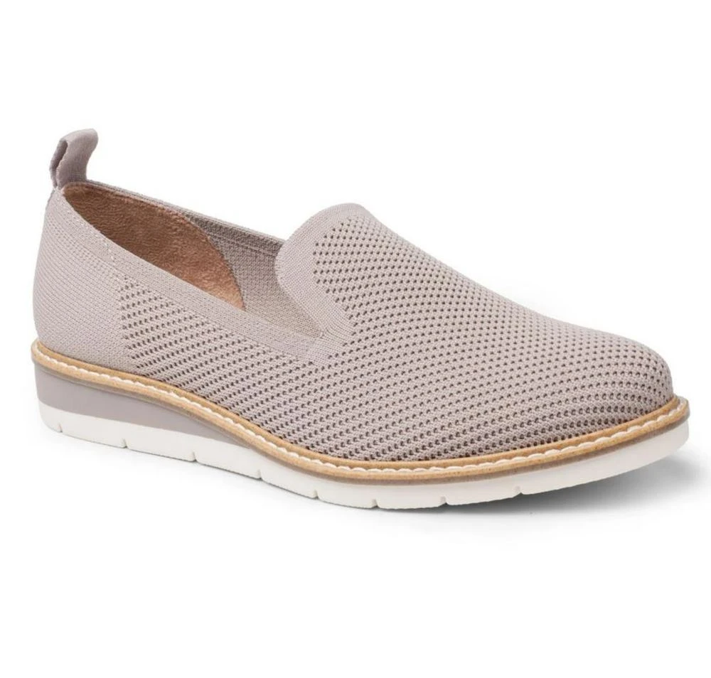 A closed toe slip on for warm weather. Features a heel of 0.5 inches and a rubber treaded sole. Memory foam footbed and perforated mesh upper.