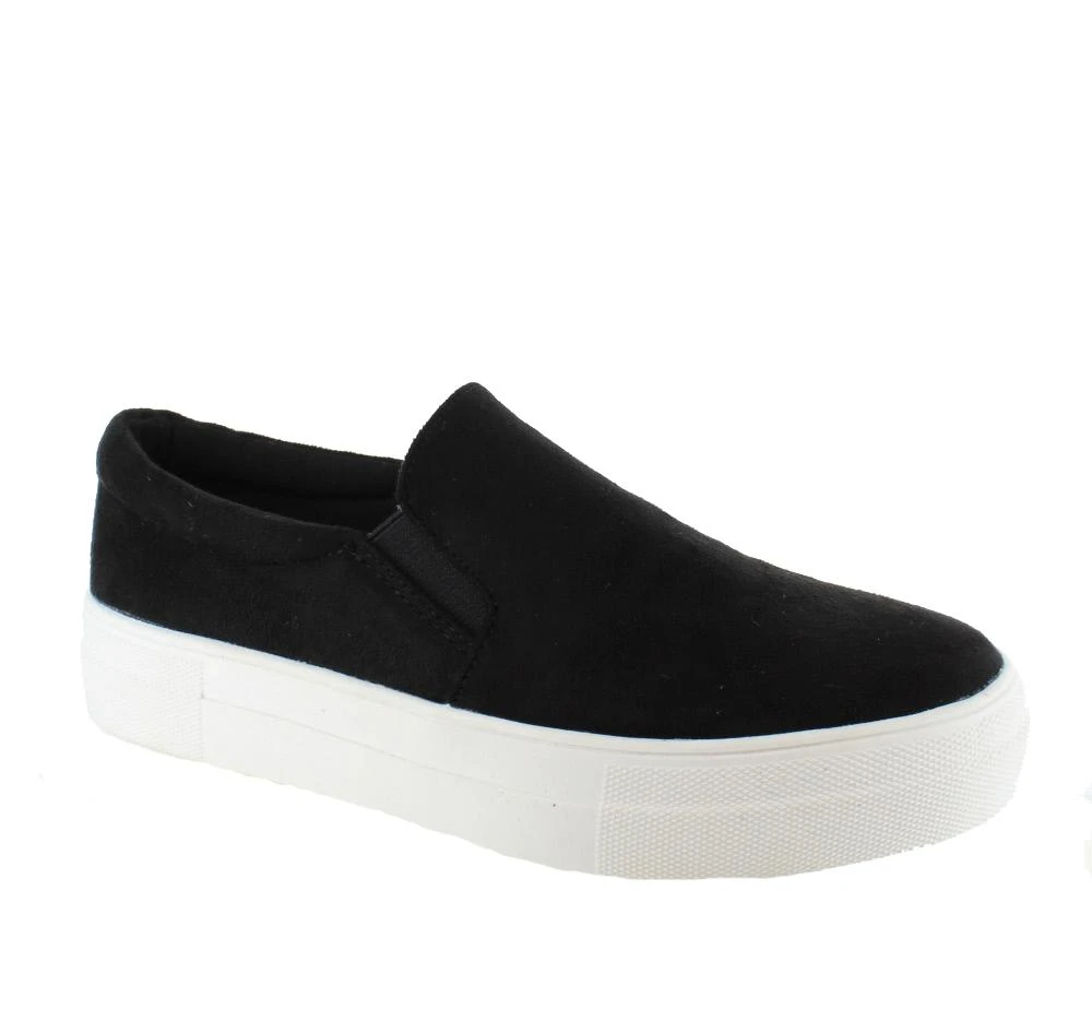 A higher platform slip-on sneaker with either a solid or patterned print synthetic upper. The soft cushioned midsole is perfect for all-day wear and the stylish design goes with pratically any item in your closet.