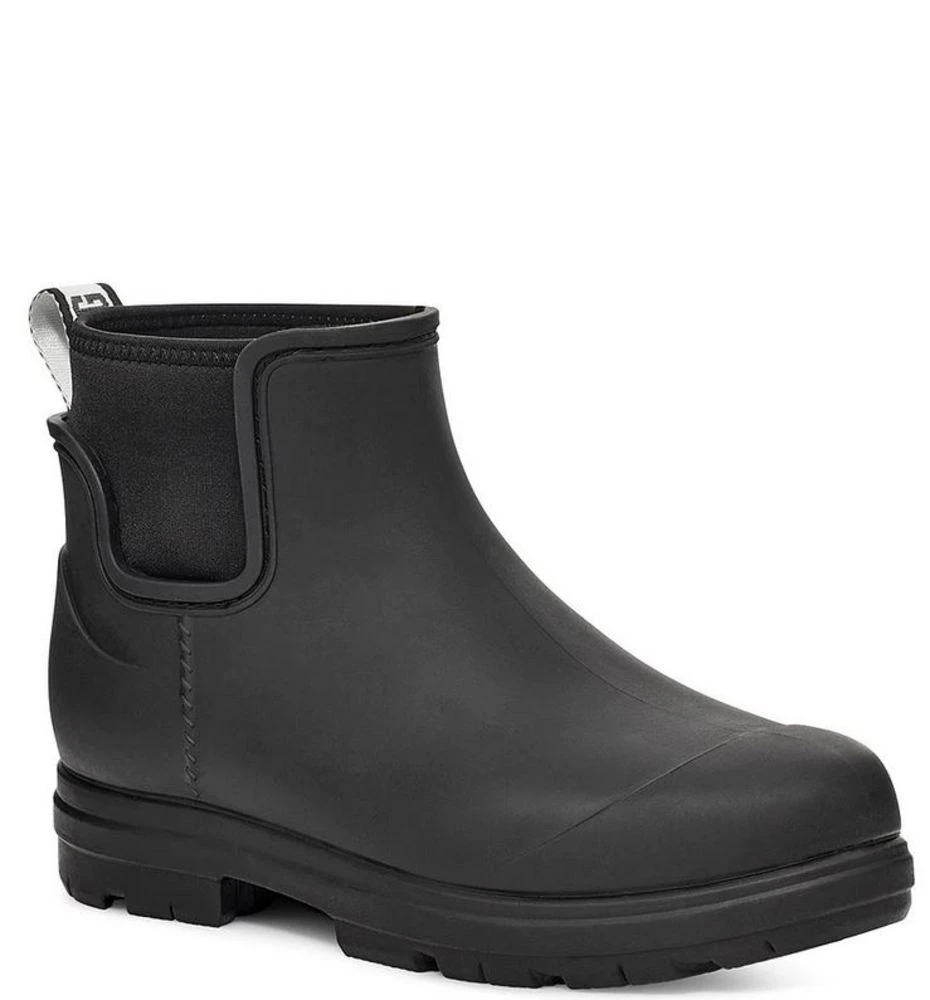 A waterproof runabout from ugg for cold, rainy days. Features a rubber upper and neoprene collar. A rear pull tab for easy on and off and an EVA footbed that is sure to keep your feet comfortable all day long. 10mm curly UGGplush™ 60% upcycled wool, 40% TENCEL™ Lyocell lining.